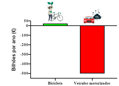 Um estudo conduzido por Gössling e colaboradores (2019) analisou o custo-benefício anual entre o transporte ativo (ex. bicicleta) e o transporte por automotores (ex. carros) nos países da União Europeia (UE).